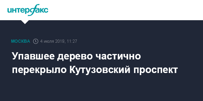 Москва. 4 июля. INTERFAX.RU - В Москве утром в четверг упавшее дерево перегородило проезд по Кутузовскому проспекту в районе дома 72, сообщил "Интерфаксу" источник, знакомый с ситуацией.
