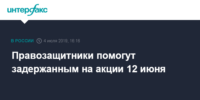 Москва. 4 июля. INTERFAX.RU - Правозащитники из центров "Мемориал" и "За права человека", "ОВД-Инфо" и Московской хельсинской группы запустили проект по защите задержанных на акции в поддержу журналиста "Медузы" Ивана Голунова 12 июня.