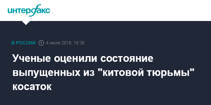 Москва. 4 июля. INTERFAX.RU - Первые выпущенные из так называемой "китовой тюрьмы" косатки находятся в хорошем состоянии, об этом свидетельствуют данные трекеров, установленные на животных.
