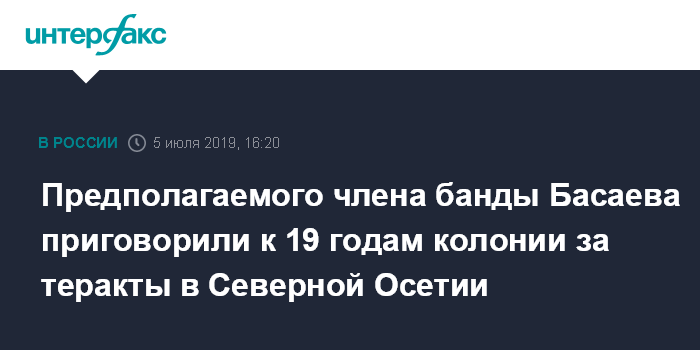Предполагаемого члена банды Басаева приговорили к 19 годам колонии за теракты в Северной Осетии