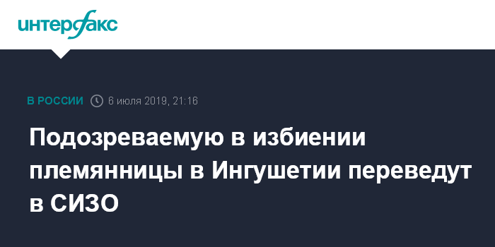 Ранее сообщалось, что 4 июля в одну из больниц Назрани была доставлена девочка из опекунской семьи с множественными ушибами и травмами. Главной подозреваемой в избиении ребенка является ее тетя. 6 июля суд в Ингушетии арестовал женщину на два месяца.