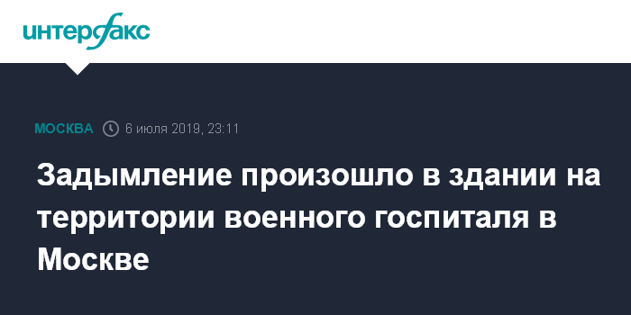 Москва. 6 июля. INTERFAX.RU - Задымление произошло в помещении на территории Главного военного клинического госпиталя Бурденко в Москве, сообщает пресс-служба Западного военного округа.