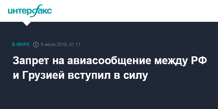 Как уточнял Минтранс РФ, запрет на прямое авиасообщение между двумя странами распространяется и на грузинские авиакомпании.