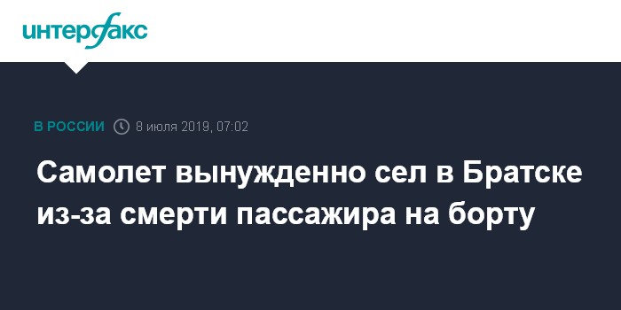 Собеседник агентства уточнил, что женщине возрастом около 50 лет стало плохо во время полета. По его словам, она умерла еще до приземления в Братске.