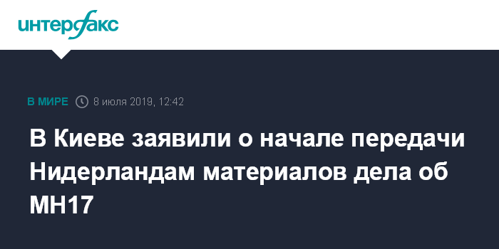Москва. 8 июля. INTERFAX.RU - Нидерланды начали принимать у Украины материалы уголовного дела о крушении малайзийского Boeing рейса МН17 под Донецком 17 июля 2014 года. Об этом в фейсбуке сообщил замминистра юстиции Украины Сергей Петухов.