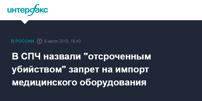 В СПЧ назвали "отсроченным убийством" запрет на импорт медицинского оборудования