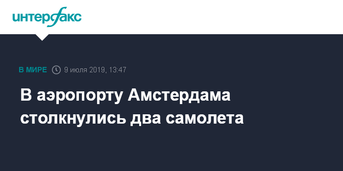 Москва. 9 июля. INTERFAX.RU - В Амстердаме в международном аэропорту Схипхол во вторник утром столкнулись два пассажирских самолета, сообщают европейские СМИ.