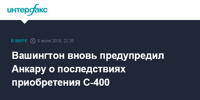 Вашингтон вновь предупредил Анкару о последствиях приобретения С-400