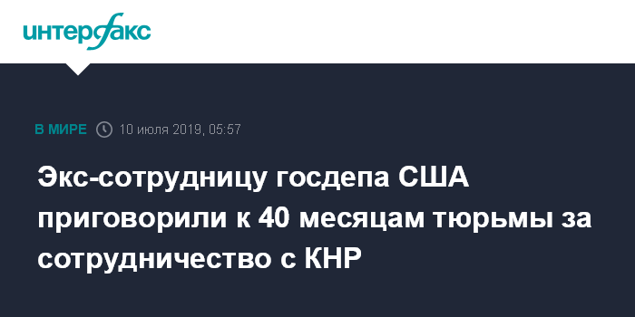 Экс-сотрудницу госдепа США приговорили к 40 месяцам тюрьмы за сотрудничество с КНР