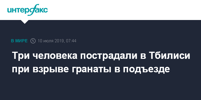 Москва. 10 июля. INTERFAX.RU - В подъезд одного из жилых домов в Тбилиси в районе Варкетили в ночь на среду неизвестный бросил гранату, в результате чего пострадали трое молодых людей, сообщает МВД Грузии.