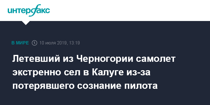 Летевший из Черногории самолет экстренно сел в Калуге из-за потерявшего сознание пилота