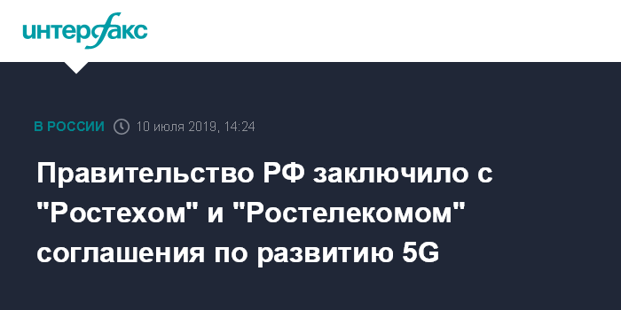 Правительство РФ заключило с "Ростехом" и "Ростелекомом" соглашения по развитию 5G