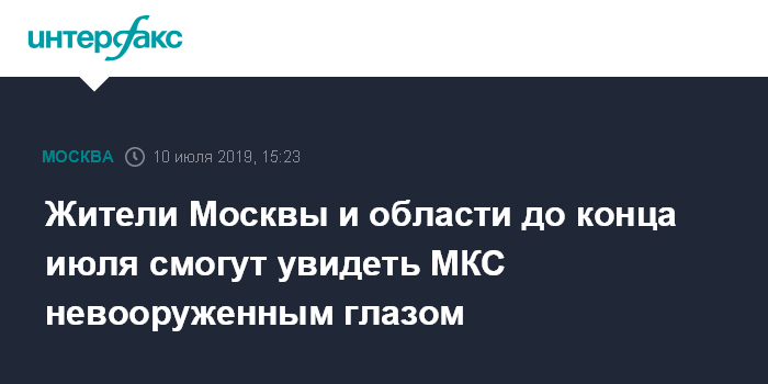 Москва. 10 июля. INTERFAX.RU - Жители Москвы и Подмосковье до конца июля могут невооруженным глазом увидеть на ночном небе Международную космическую станцию, рассказали в среду в "Роскосмосе".