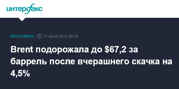 Brent подорожала до $67,2 за баррель после вчерашнего скачка на 4,5%