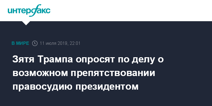 Зятя Трампа опросят по делу о возможном препятствовании правосудию президентом