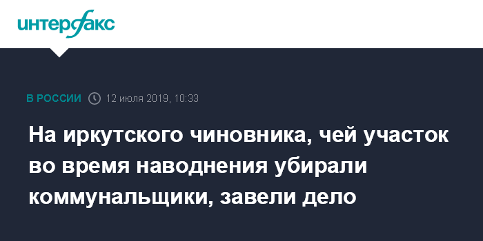 Москва. 12 июля. INTERFAX.RU - На мэра Нижнеудинского района Иркутской области, который использовал муниципальную спецтехнику для расчистки своего участка после наводнения, завели уголовное дело, сообщил в пятницу СК.