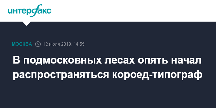 Москва. 12 июля. INTERFAX.RU - Комитет лесного хозяйства Московской области сообщил, что древесный вредитель короед-типограф вновь появился в регионе. Он причинил значительный ущерб подмосковным лесам в 2010-2011 годах.