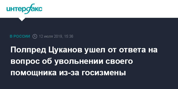 Полпред Цуканов ушел от ответа на вопрос об увольнении своего помощника из-за госизмены