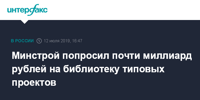 Минстрой попросил почти миллиард рублей на библиотеку типовых проектов
