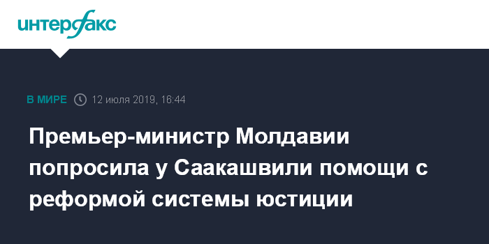 Москва. 12 июля. INTERFAX.RU - Премьер-министр Молдавии Майя Санду попросила экс-президента Грузии Михаила Саакашвиле помочь в разработке реформы системы юстиции. Она сообщила об этом в интервью изданию Cotidianul.