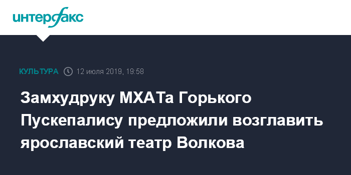 Москва. 12 июля. INTERFAX.RU - Заместитель художественного руководителя МХАТа имени Горького Сергей Пускепалис сообщил, что с ним идут обсуждения о возможном художественном руководстве Ярославским театром драмы имени Волкова.
