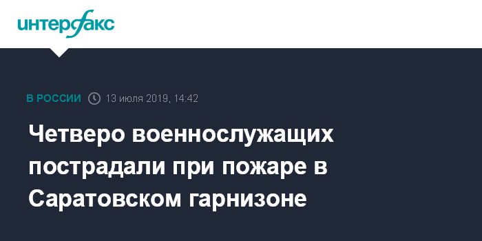 Москва. 13 июля. INTERFAX.RU - Четверо военнослужащих пострадали в субботу при возгорании во время заправки автоцистерны топливом, сообщили в командовании Саратовского гарнизона.