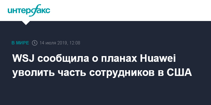 Москва. 14 июля. INTERFAX.RU - Huawei Technologies Corporation планирует сокращение штата в исследовательском подразделении Futurewei Technologies, базирующемся в США, сообщает газета The Wall Street Journal.