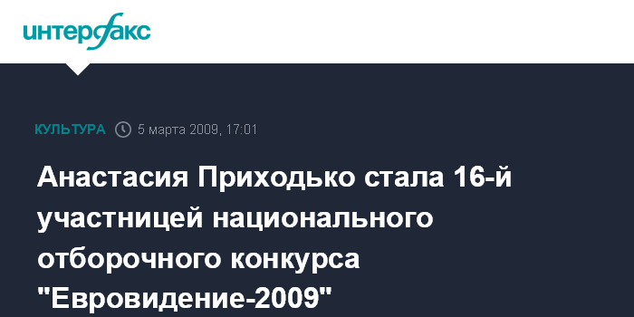 Анастасия Приходько стала 16-й участницей национального отборочного конкурса "Евровидение-2009"
