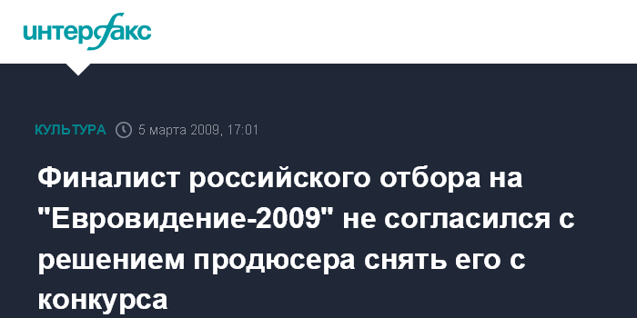 Финалист российского отбора на "Евровидение-2009" не согласился с решением продюсера снять его с конкурса