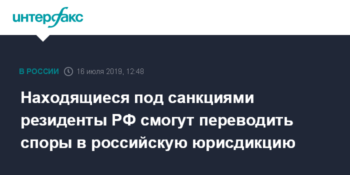 Находящиеся под санкциями резиденты РФ смогут переводить споры в российскую юрисдикцию