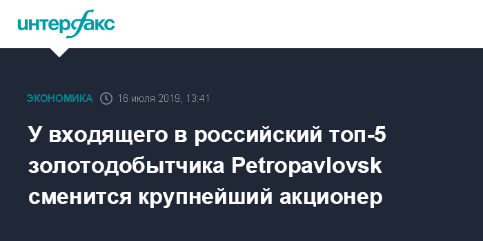 У входящего в российский топ-5 золотодобытчика Petropavlovsk сменится крупнейший акционер