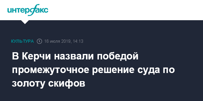 Москва. 16 июля. INTERFAX.RU - Директор керченского Восточно-Крымского историко-культурного музея-заповедника Татьяна Умрихина назвала позитивным промежуточное решение Апелляционного суда Амстердама по принадлежности "скифского золота". Она сказала это "Интерфаксу", что в тяжбе "пробита главная брешь".