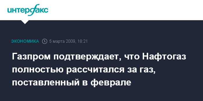 Газпром подтверждает, что Нафтогаз полностью рассчитался за газ, поставленный в феврале