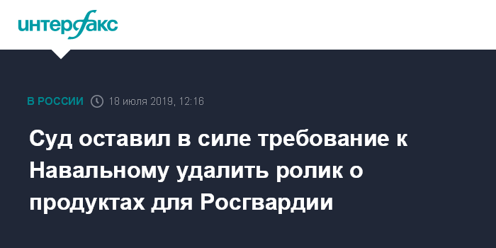 Суд оставил в силе требование к Навальному удалить ролик о продуктах для Росгвардии
