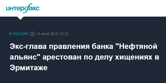 Экс-глава правления банка "Нефтяной альянс" арестован по делу хищениях в Эрмитаже