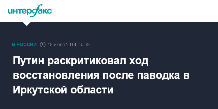 Москва. 19 июля. INTERFAX.RU - Президент РФ Владимир Путин назвал неудовлетворительной работу по ликвидации последствий паводка в Иркутской области.