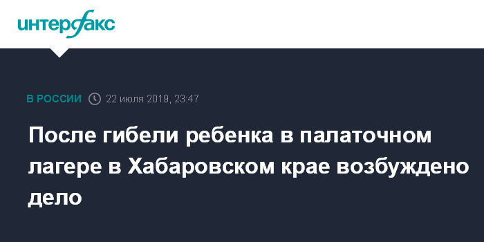 После гибели ребенка в палаточном лагере в Хабаровском крае возбуждено дело