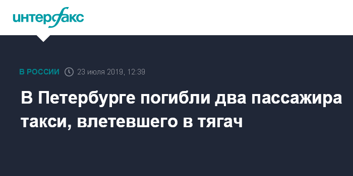 Москва. 23 июля. INTERFAX.RU - В Петербурге автомобиль такси врезался в грузовик: два пассажира погибли, один пострадал.