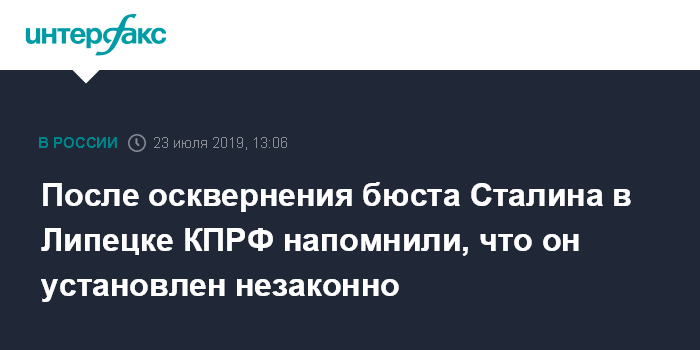 После осквернения бюста Сталина в Липецке КПРФ напомнили, что он установлен незаконно