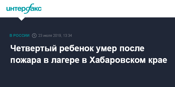 Четвертый ребенок умер после пожара в лагере в Хабаровском крае