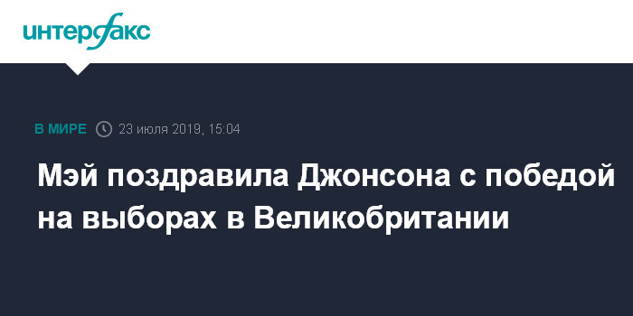 Москва. 23 июля. INTERFAX.RU - Премьер-министр Великобритании Тереза Мэй во вторник поздравила Бориса Джонсона с тем, что он стал лидером Консервативной партии Великобритании.