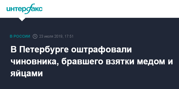 В Петербурге оштрафовали чиновника, бравшего взятки медом и яйцами