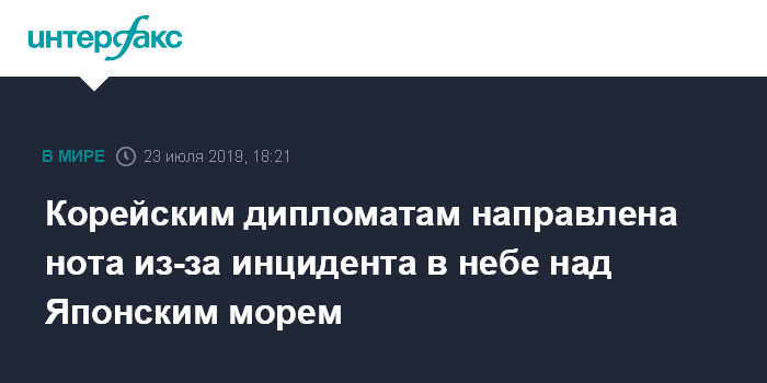 Корейским дипломатам направлена нота из-за инцидента в небе над Японским морем