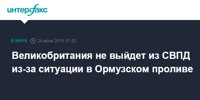 Москва. 24 июля. INTERFAX.RU - Лондон не намерен отказываться от своих обязательств по Совместному всеобъемлющему плану действий (СВПД) из-за конфликта с Ираном в Ормузском проливе, но может ввести односторонние санкции в отношении Тегерана, сообщает в среду газета "Известия" со ссылкой на источники в министерстве иностранных дел Великобритании.