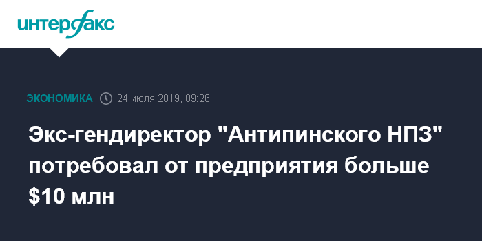 Экс-гендиректор "Антипинского НПЗ" потребовал от предприятия больше $10 млн
