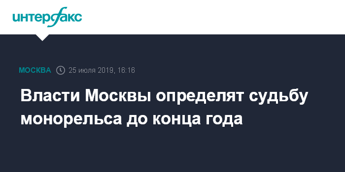 Москва. 25 июля. INTERFAX.RU - В мэрии Москвы еще не решили, будут ли реконструировать линию монорельса или заменят ее каким-то другим видом транспорта. Решение будет принято до конца 2019 года, пообещал заместитель мэра по вопросам градостроительной политики и строительства Марат Хуснуллин.