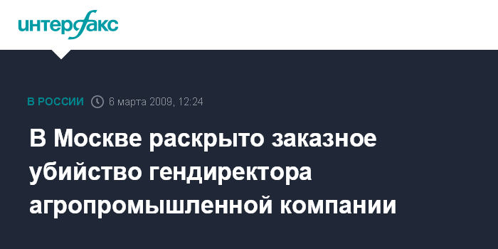 Москва. 6 марта. INTERFAX.RU - Сотрудники московского уголовного розыска раскрыли заказное убийство генерального директора одной из столичных агропромышленных компаний, сообщил "Интерфаксу" источник в правоохранительных органах города в пятницу.