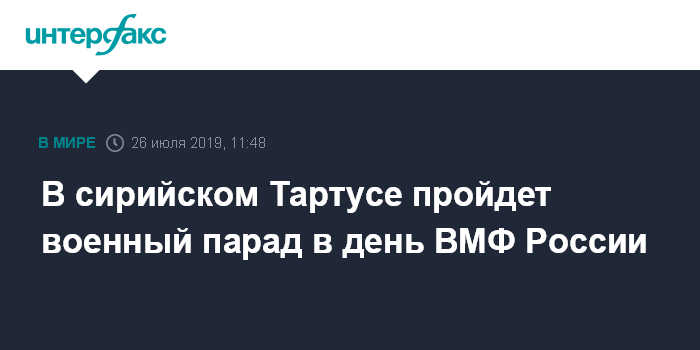 В сирийском Тартусе пройдет военный парад в день ВМФ России