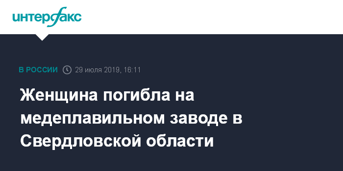 Москва. 29 июля. INTERFAX.RU - На медеплавильном заводе в городе Ревда (Свердловская область) из-за вспышки огня погибла сотрудница, сообщил "Интерфаксу" источник в службах технического надзора.
