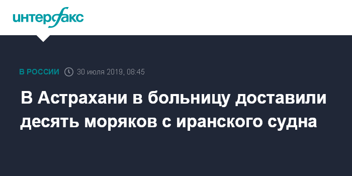 Москва. 30 июля. INTERFAX.RU - В Астрахани в областную астраханскую больницу положили десять моряков с иранского контейнеровоза "Тина", который стоит в местном порту. Предварительный диагноз - вирусная инфекция, сообщили в пресс-службе регионального Минздрава.